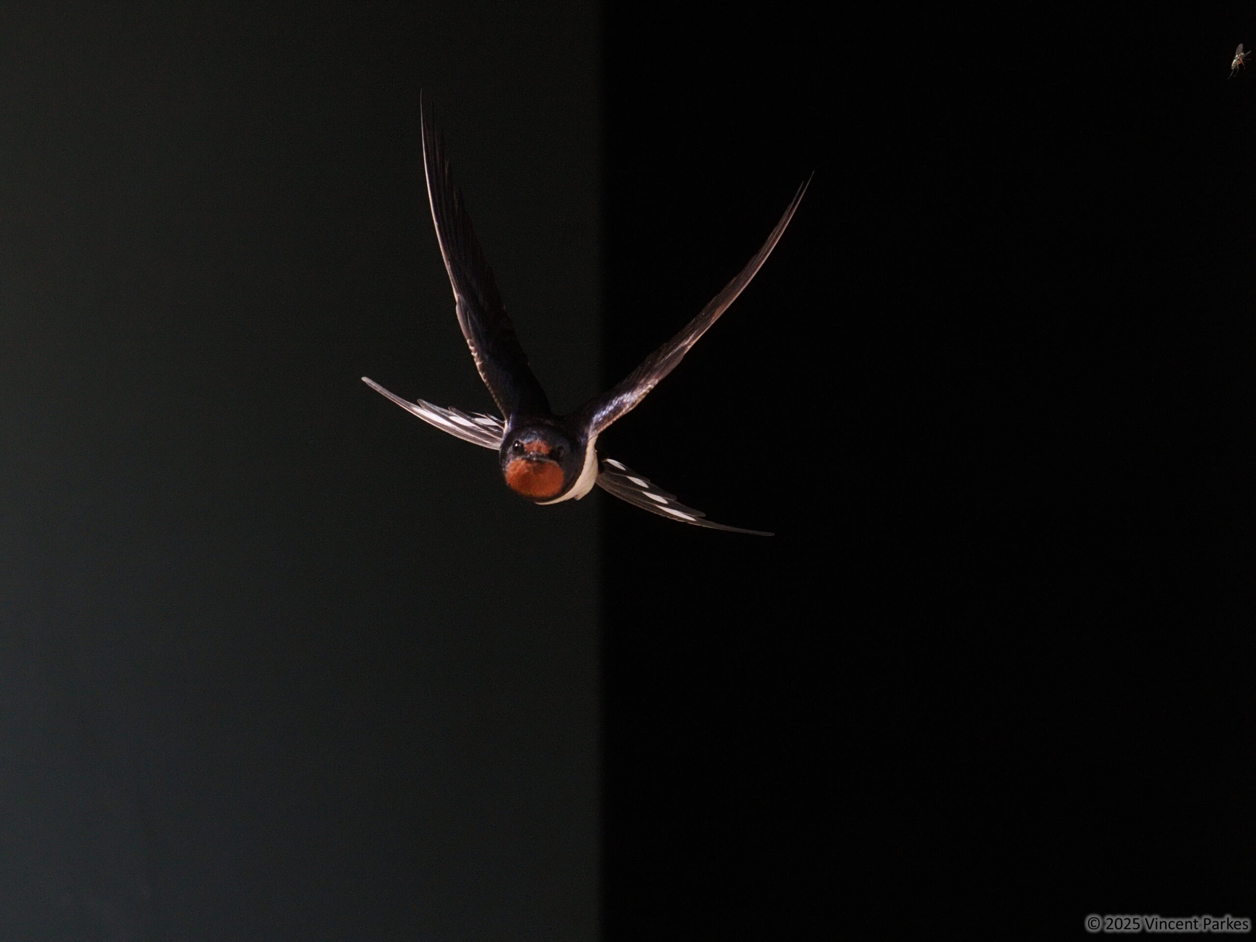 This photo, whilst being good, just missed out on being great. When reviewing through the shots I could see, out of focus, the bird had spotted a fly on his way out and had taken an extreme aerial acrobatic manoeuvre to try and grab it. All fuzzy I could see him with his beak wide open making a grab for some beetle in flight. Sadly by the time he was in the “in focus” zone he was getting back to normal flight having missed the bug. Still, I’m quite happy with the result.
